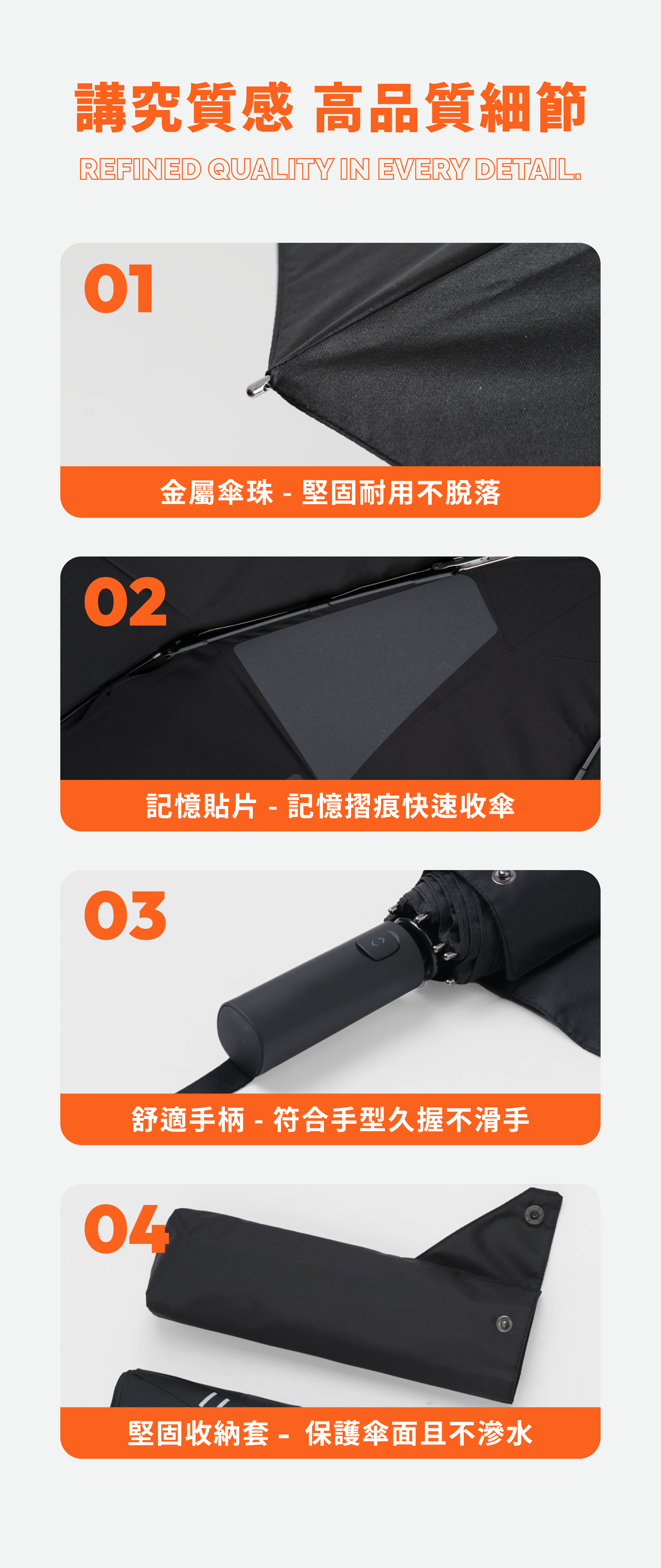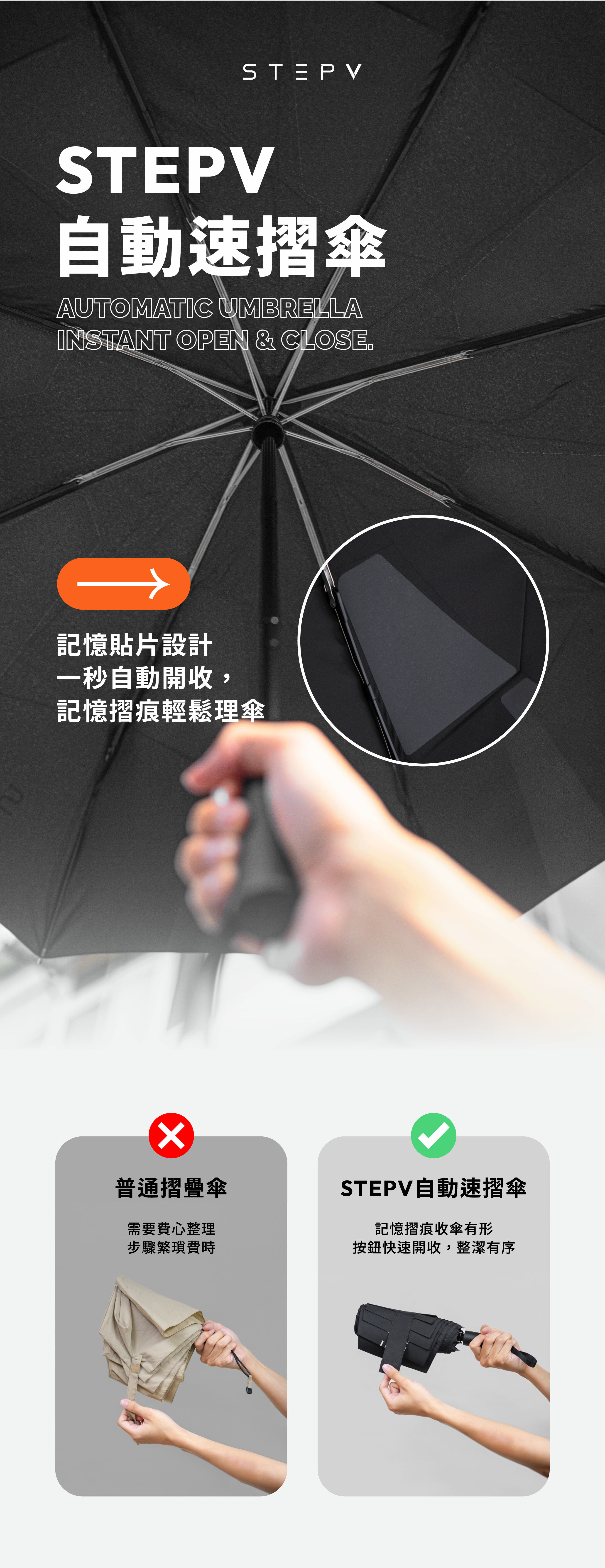 記憶貼片設計!一秒自動開收,記憶摺痕輕鬆理傘