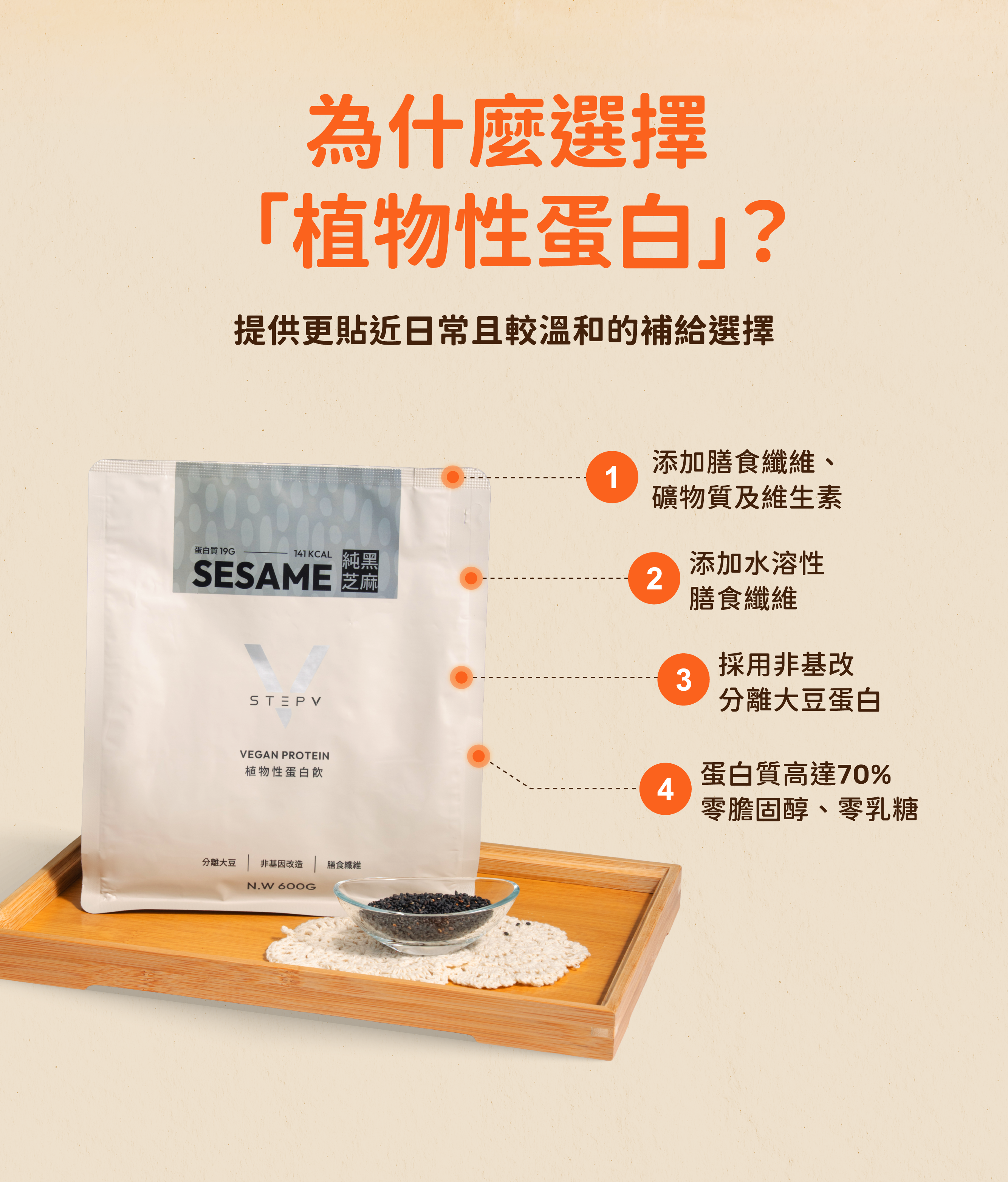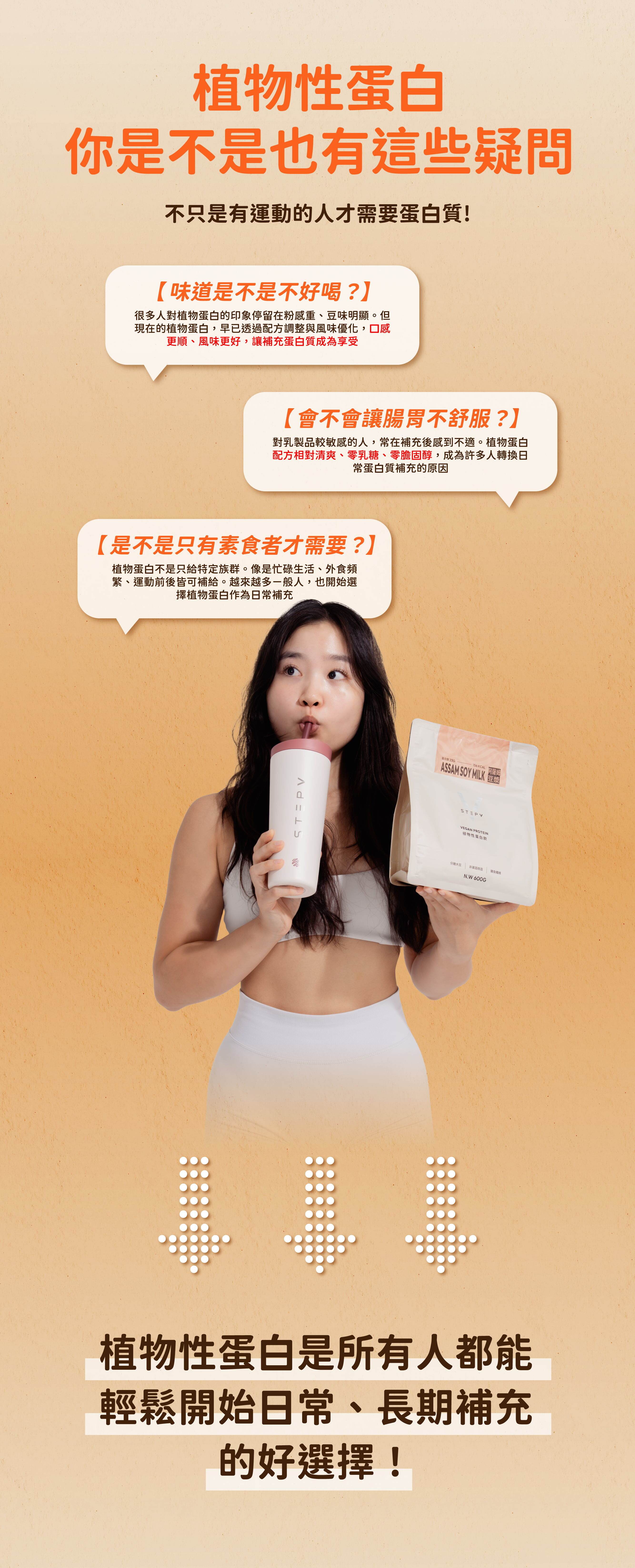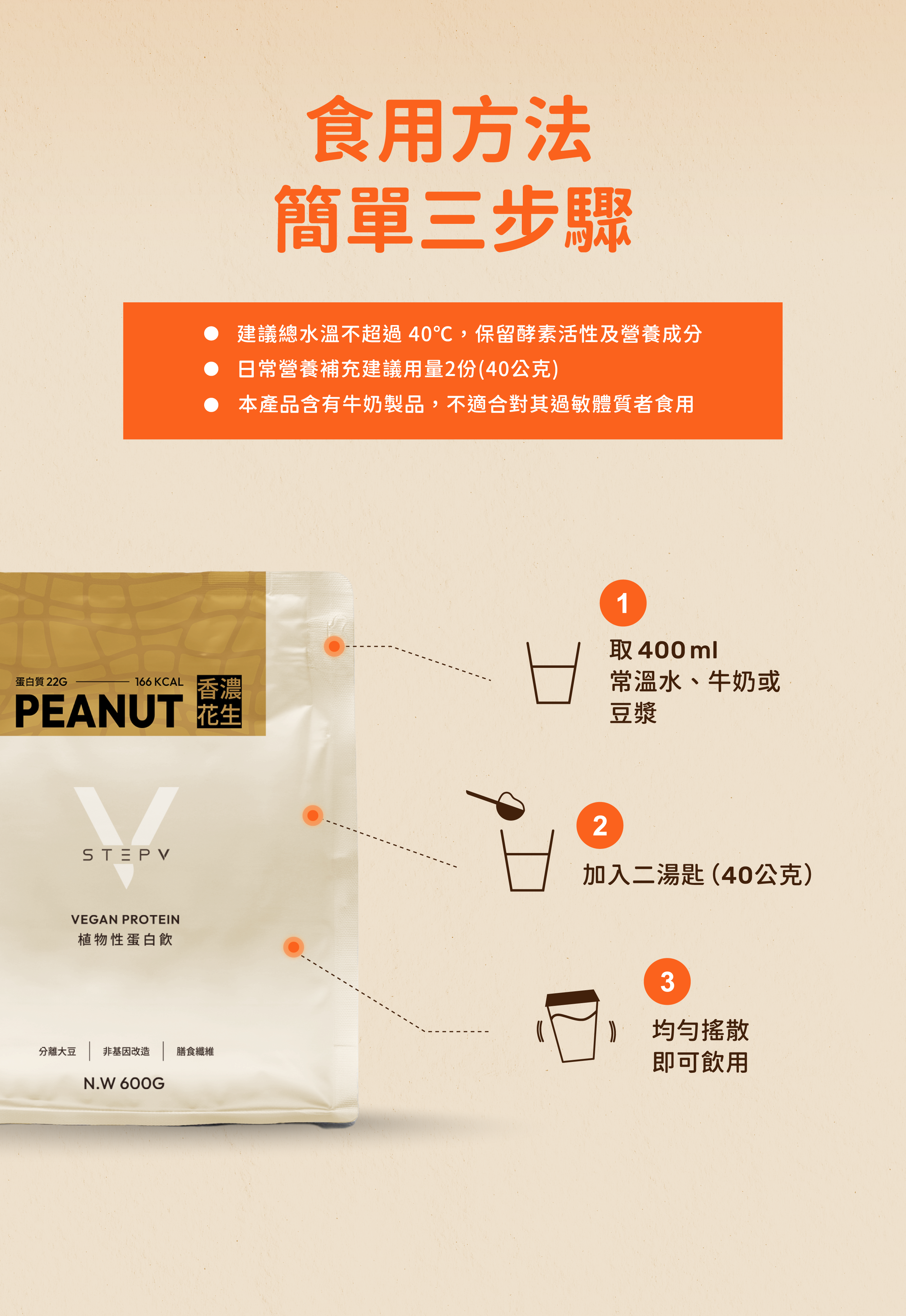 ❶|植物性優質蛋白飲,採用非基改分離大豆蛋白更清爽順口