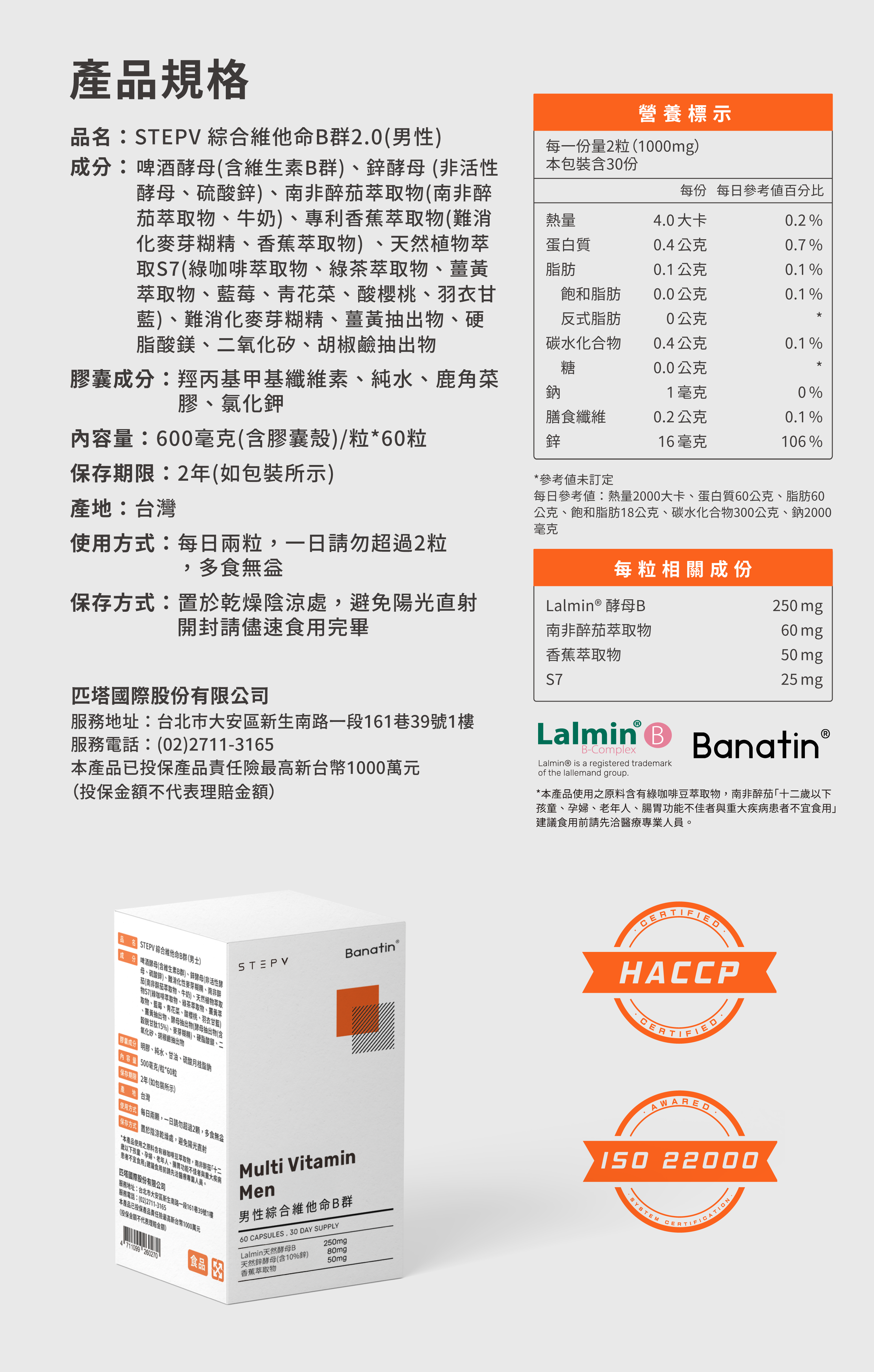 男性B群好評 2.0 再強化,專為男性打造,選用雙天然成分吸收效率更佳,有效增強體力、調節生理機能和促進新陳代謝!